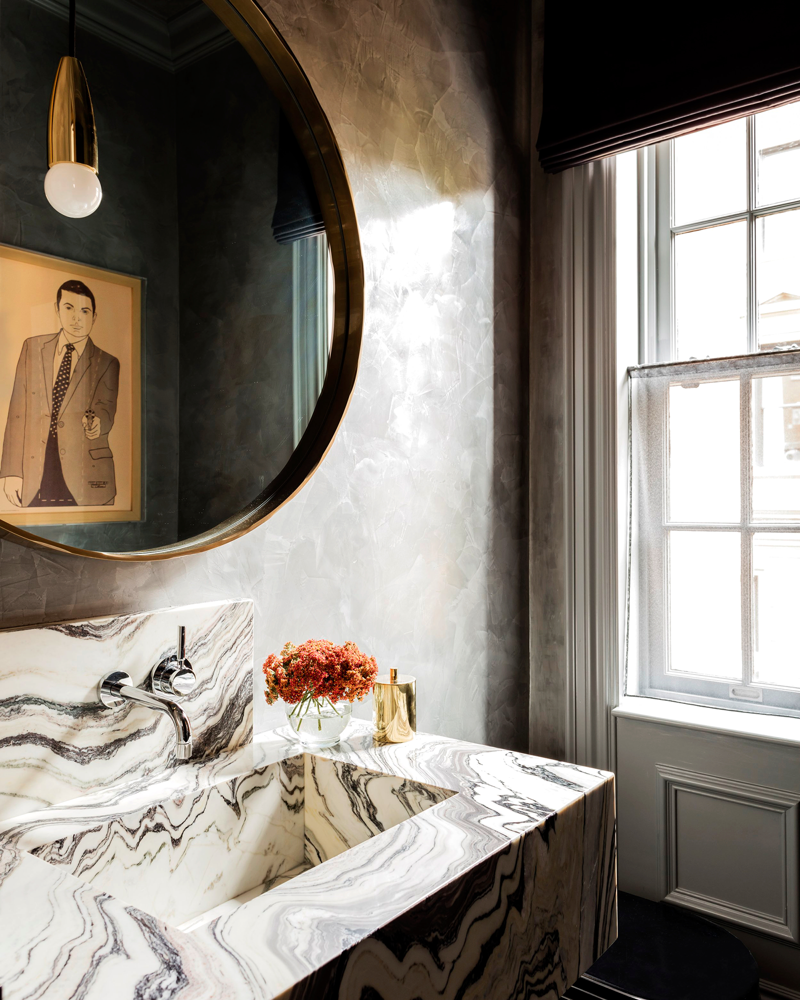 Swirling Marble & Mixed Metals via Elms Interior Design