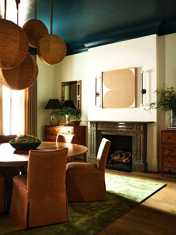 What makes the color drench trend especially compelling is its versatility. It’s often used to define specific rooms—transforming dining rooms, libraries, and studies into immersive retreats. When done well, it enhances depth, amplifies character, and brings a sense of intentionality to the overall design – carrying the eye from floor to sofa to wall to ceiling in one gracious sweeping motion.