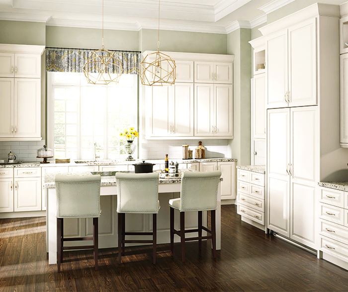 Pantone Cloud Dancer Cabinets via Fieldstone Edgemont
