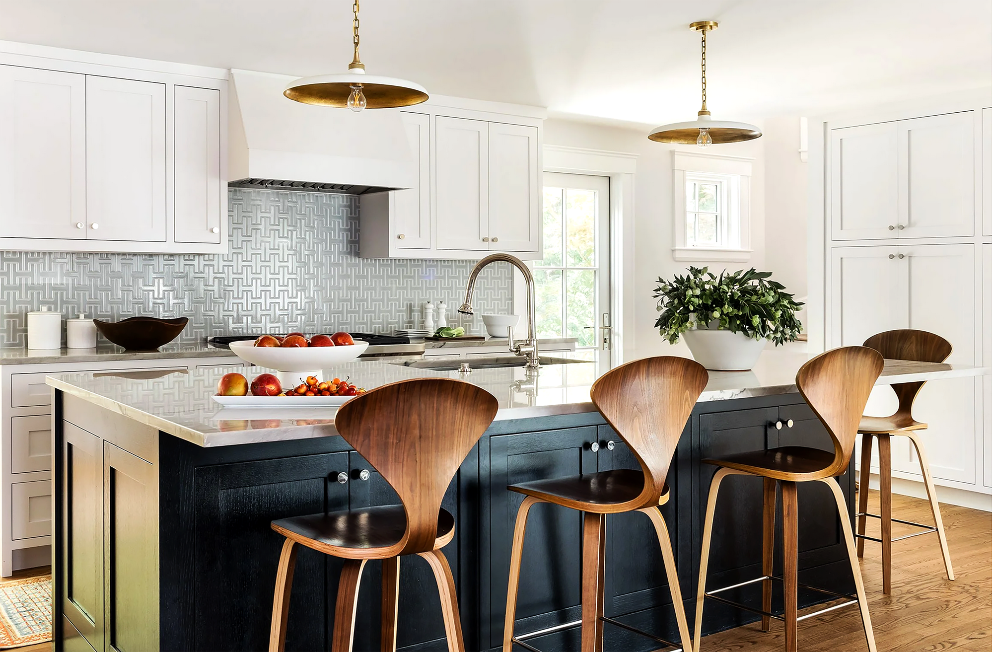 Designers such as Twelve Chairs are embracing full-slab stone installations—creating striking, uninterrupted surfaces—while Elms Interior Design incorporates mixed metals to add depth, contrast, and a tailored finish.